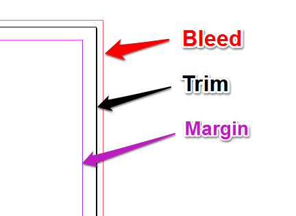 We've all seen the message in the rear-view mirror “Objects are closer than they appear.” With page layouts, the message would be “You're closer to the trim than you think.” It's always advisable to keep text and images at least a ¼" (1p6 picas or 6.35 mm) away from the trim. The easiest way to do this is to setup your margins when creating the document and staying inside the margin. In InDesign, the standard color key is purple for the margin, black for the trim, and red for the bleed.