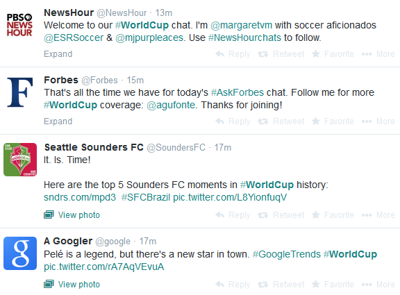 The easiest way to understand how hashtags were intended to be used is to think of them as a conversation 'room'. In the early days of the Internet, Yahoo! rose to fame on the popularity of their chat rooms. These chat rooms could be created by users and were usually based on different topics, like an age group, music, beliefs or whatever. Hashtags are similar to this concept in that they bring users to a 'conversation' about a subject. For example, if you search for the #WorldCup hashtag on Twitter, you'll find many users having a 'conversation' about the FIFA World Cup.