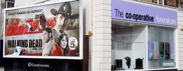 A big buzz word in marketing today, and one you should pay a lot of attention to, is context. In very simplified terms, context is a set of environmental factors that influence how an audience will perceive your message. Take for example the Walking Dead billboard above. Notice that it is placed on the wall of a funeral parlor. Do you think this might affect the way someone will perceive this advertisement? If someone was visiting the funeral parlor to look at headstones or caskets for a recently deceased loved one, would they be receptive to this advertisement?