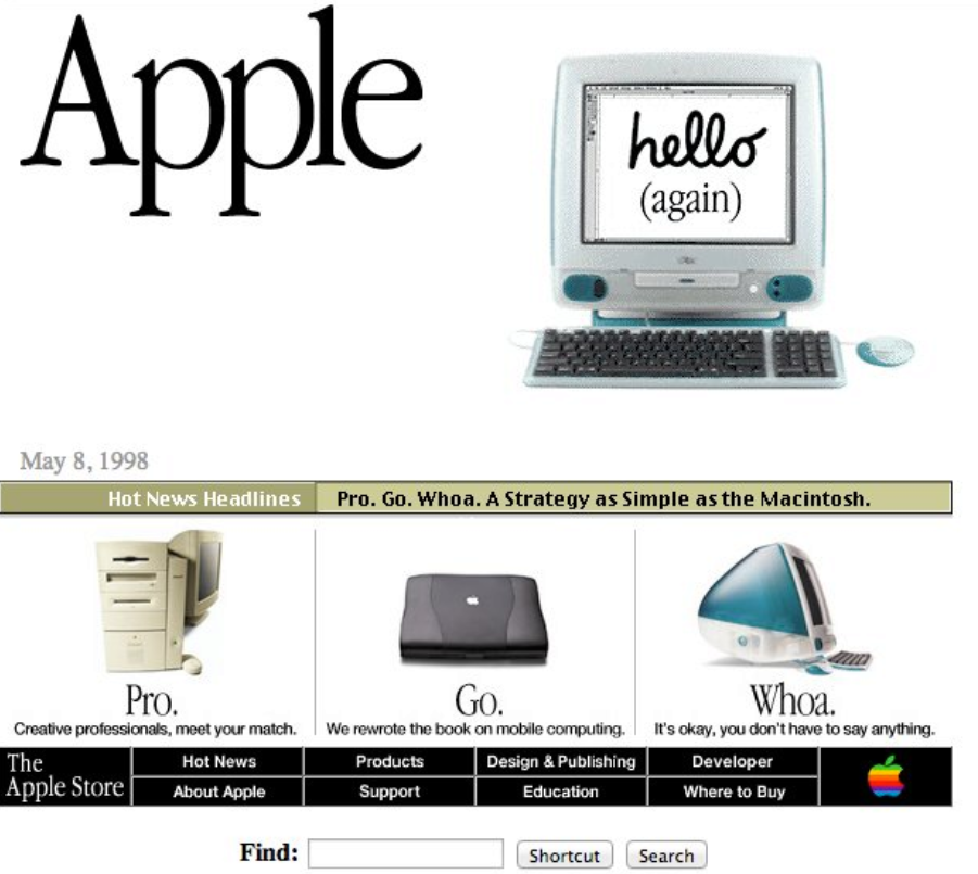 Web 1.0 is how we might describe the style associated with websites built before 2003, and although the actual design elements (color, layout, images, etc.) vary greatly, they all share certain common features: Static web pages, built with tables and HTML 1.0, designed for low screen resolutions, web-safe colors, blue underlined hyperlinks and 8-bit jpegs, gifs & animated gifs. We typically imagine web 1.0 sites as looking something like this: