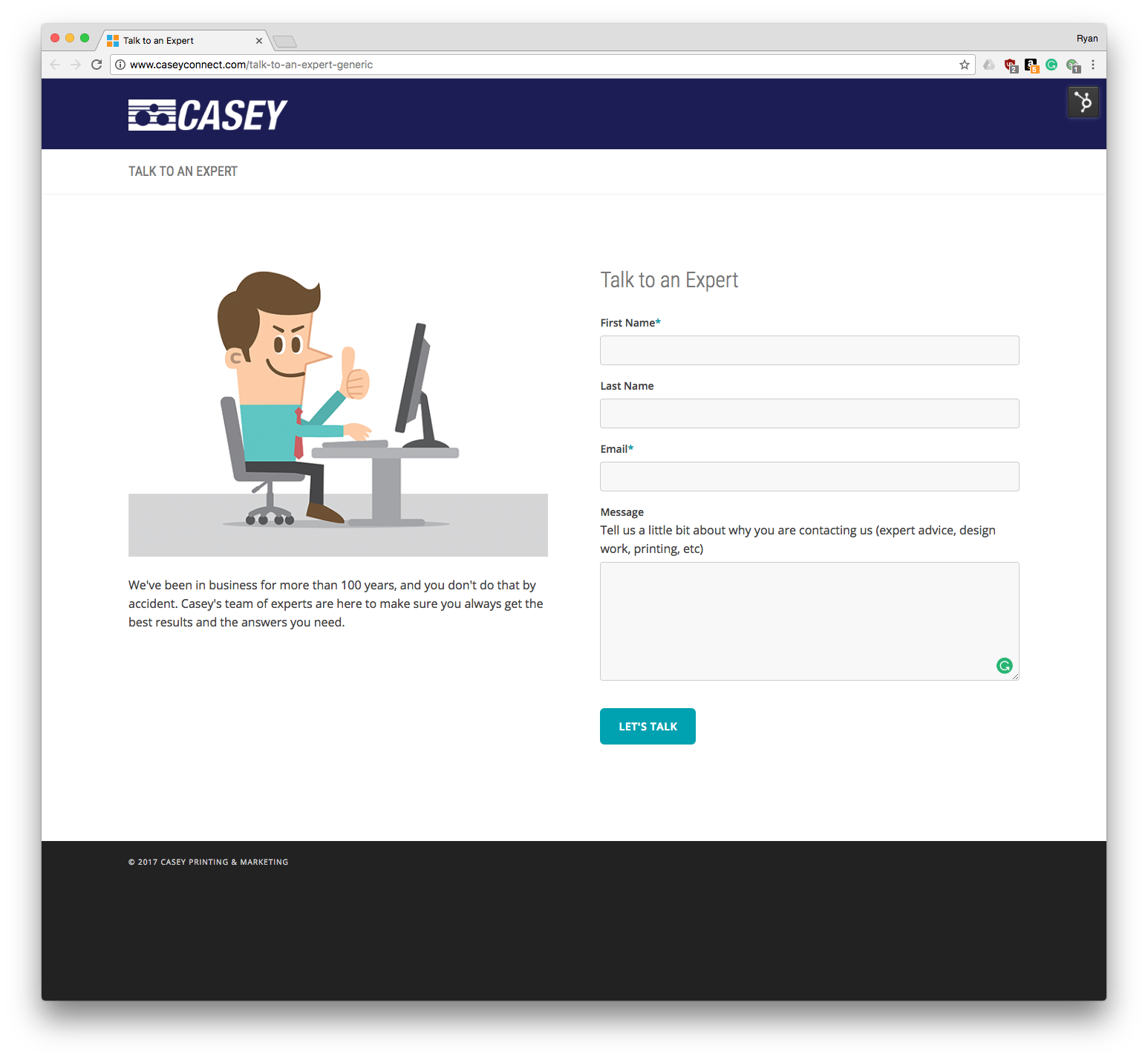 CASEY can help you create landing pages, as well as the offers that go along with them. We will even monitor how well the visitors to your landing pages are converting to contacts, and offer advice on how to continuously improve the quality and quantity of your leads.